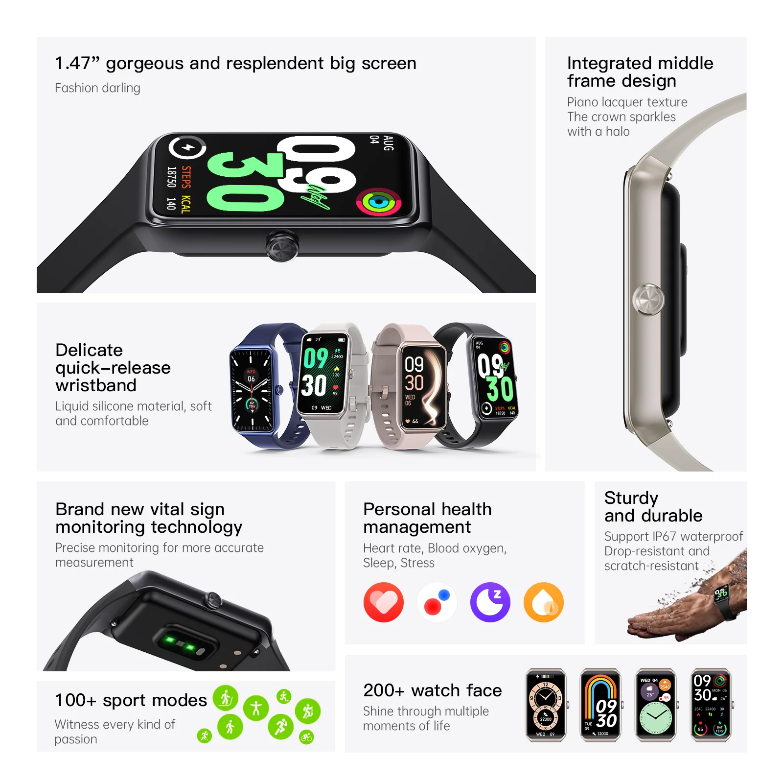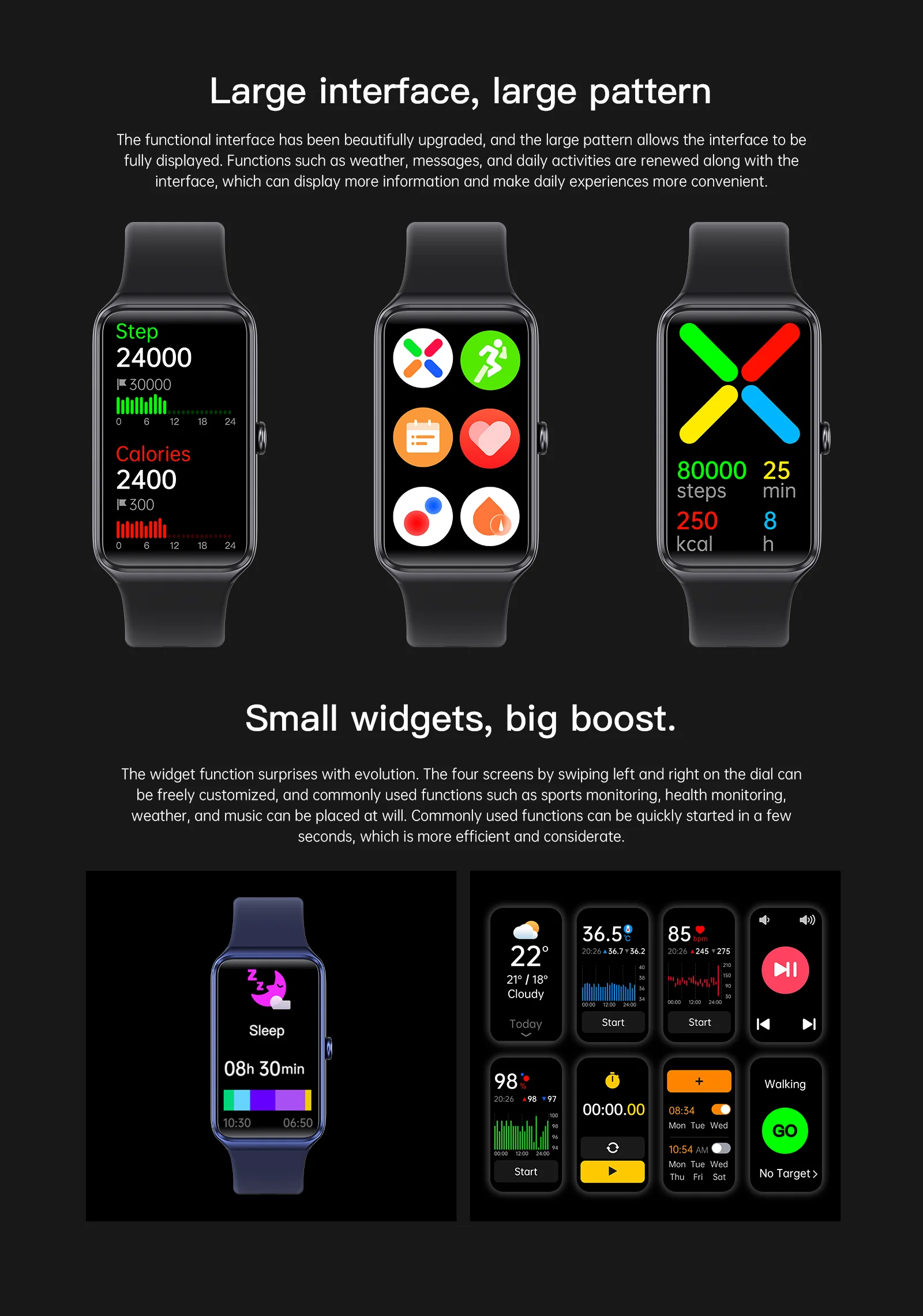 ▶Health monitoring: heart rate/blood pressure/blood oxygen/body temperature/stress monitoring, sleep monitoring
